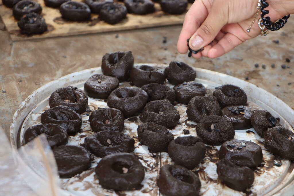 Las semillas se envuelven en una arcilla nutritiva que se deshidrata y se conserva adecuadamente hasta el inicio de la temporada de lluvias, momento en el que son dispersadas en polígonos previamente seleccionados.