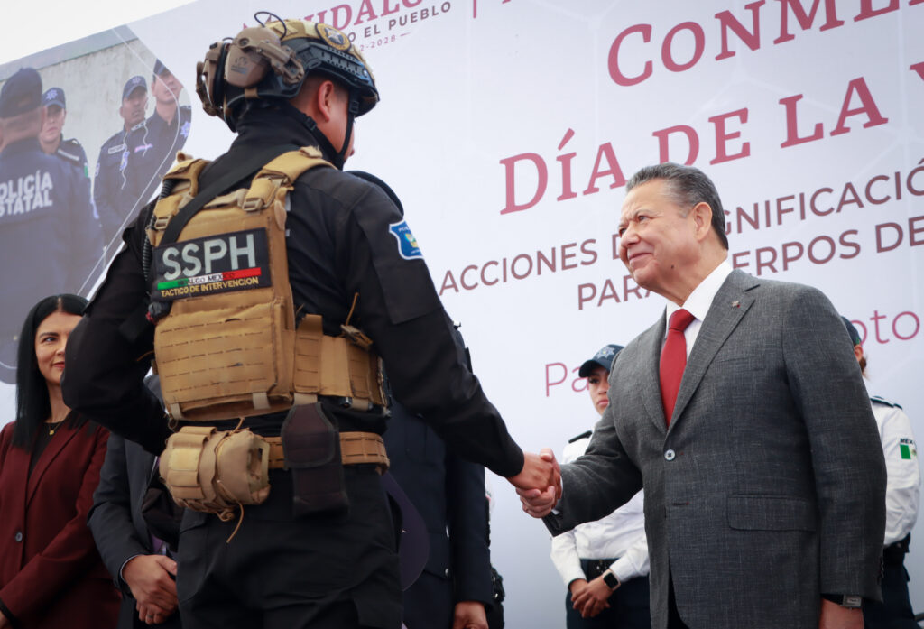 En el marco del Día de la y el Policía, el gobernador de Hidalgo, Julio Menchaca Salazar, encabezó la entrega de equipamiento, vehículos y apoyos económicos a corporaciones de seguridad, destacando la labor diaria de quienes protegen a la ciudadanía, además de reafirmar el compromiso de su administración para garantizar la paz y la tranquilidad de las familias hidalguenses.