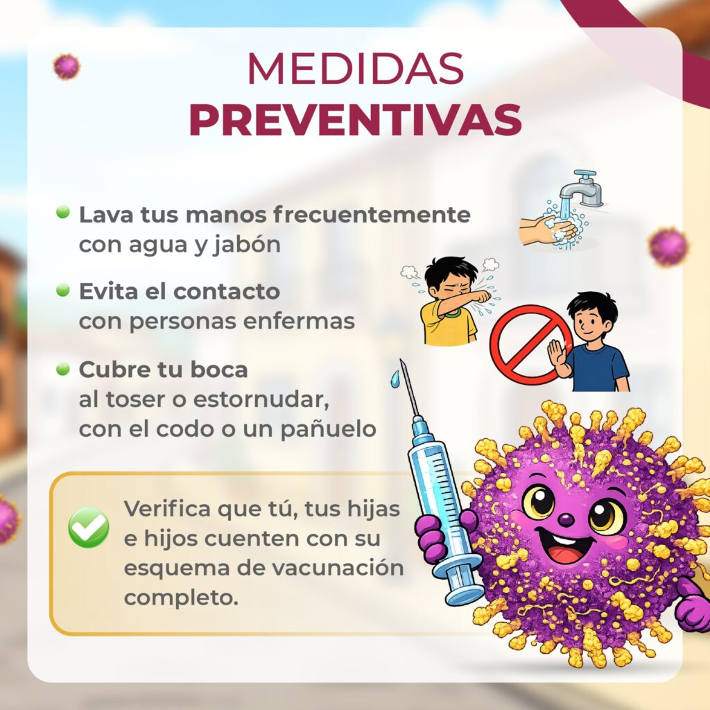 Sarampión, la principal alerta sanitaria. La Secretaría de Salud ha reforzado la vacunación, disponiendo de millones de dosis y aplicando una «dosis cero» para bebés de entre 6 y 11 meses en zonas de riesgo, aunque se insiste en que esto no sustituye el esquema regular de dos dosis (SRP).