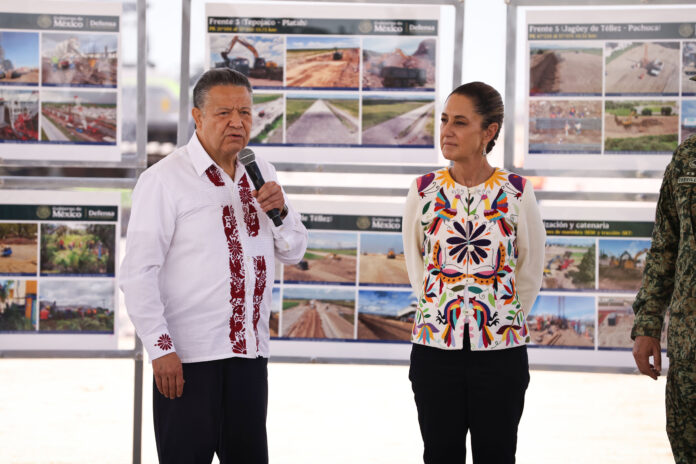 La presidenta de México, Claudia Sheinbaum Pardo, y el gobernador de Hidalgo, Julio Menchaca Salazar, supervisaron el avance del proyecto del tren de pasajeros México-Pachuca, que representa una inversión de 74 mil millones de pesos y tiene un avance del cuatro por ciento en el tramo AIFA-Pachuca.