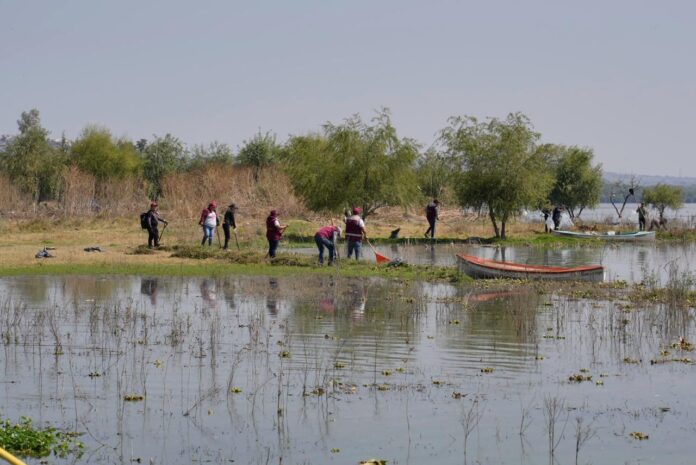 Este domingo 15 de marzo, en una respuesta urgente ante la contingencia ambiental que amenaza los cuerpos de agua de la región, se llevó a cabo una jornada masiva de limpieza y retiro de lirio acuático en la Presa Requena. La movilización interinstitucional busca frenar la propagación de esta especie invasora y proteger la vida silvestre que aún sobrevive en el embalse.